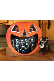 Halloween Jack-o-Lantern Skeleton Dance laser cut wood shadowbox art