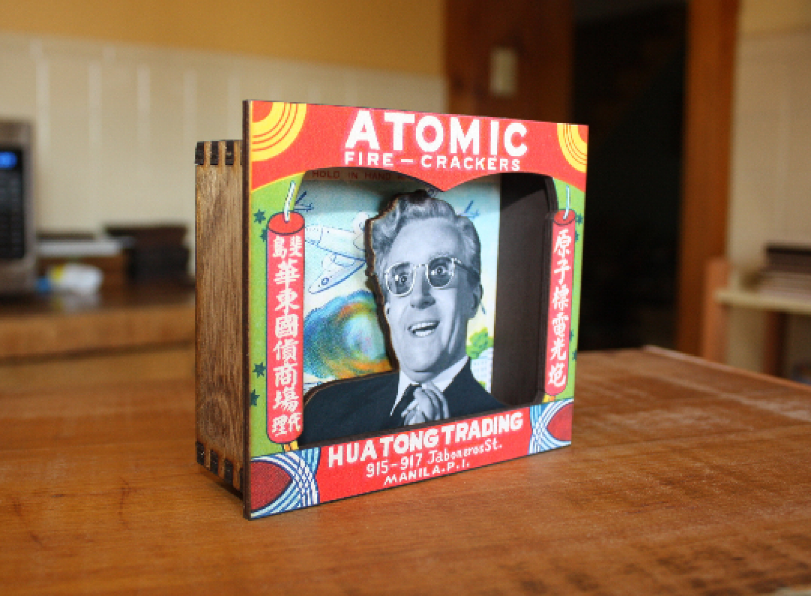 Dr STRANGELOVE Vintage ATOMIC Firecrackers laser cut wood shadowbox art