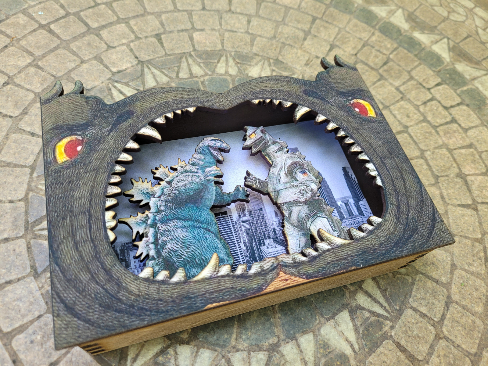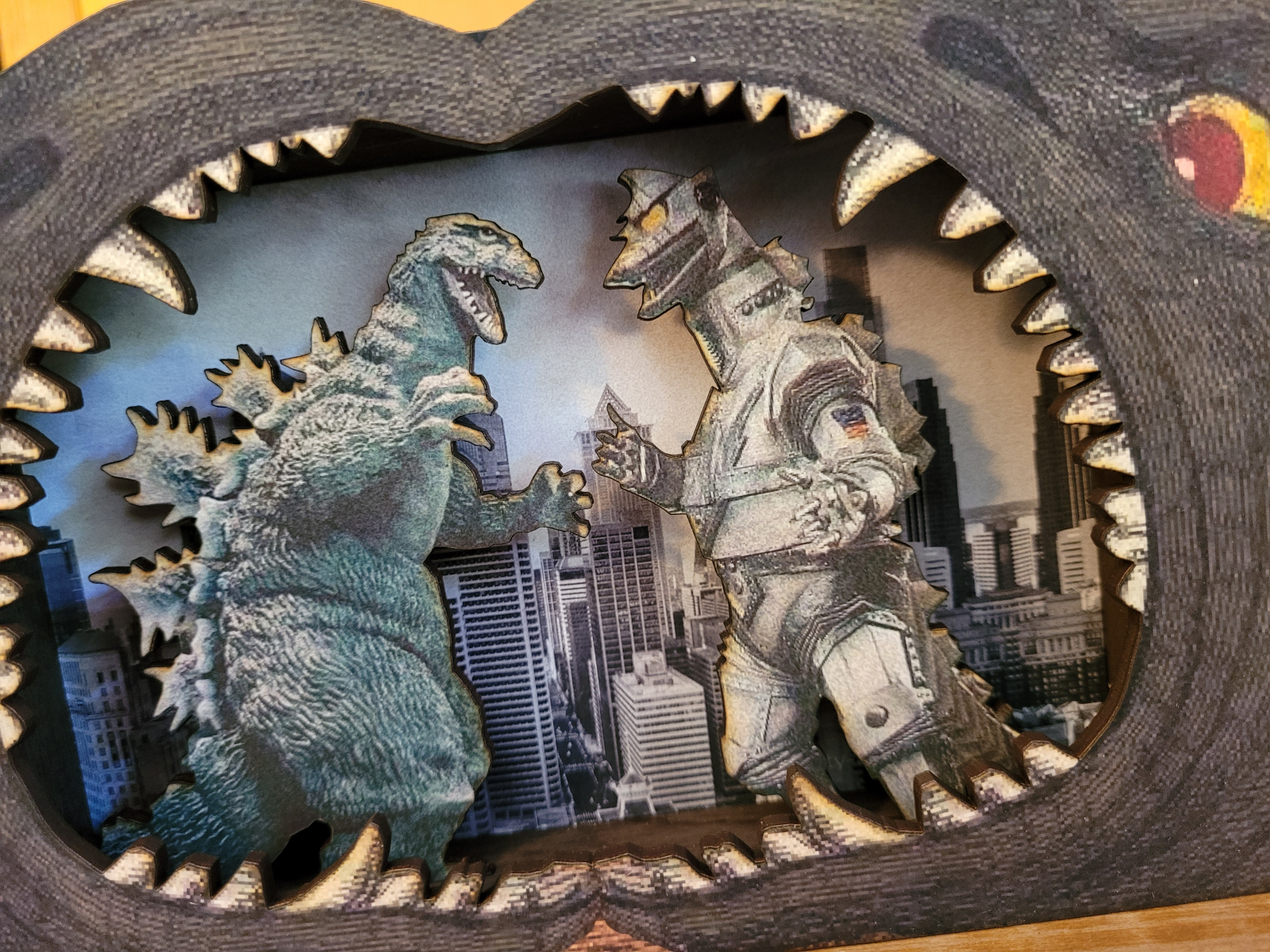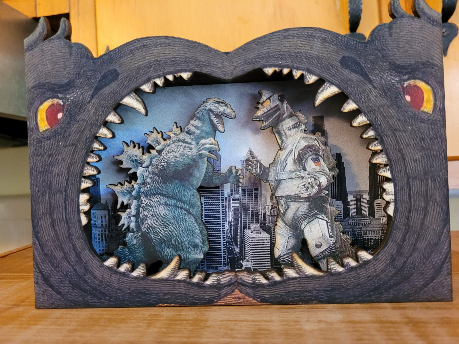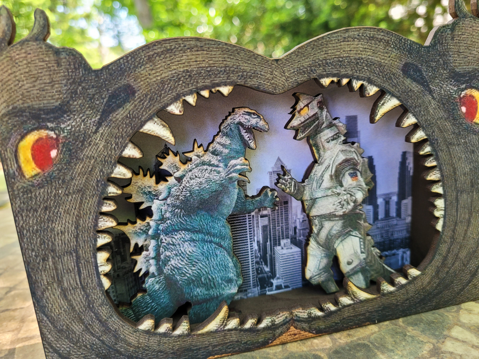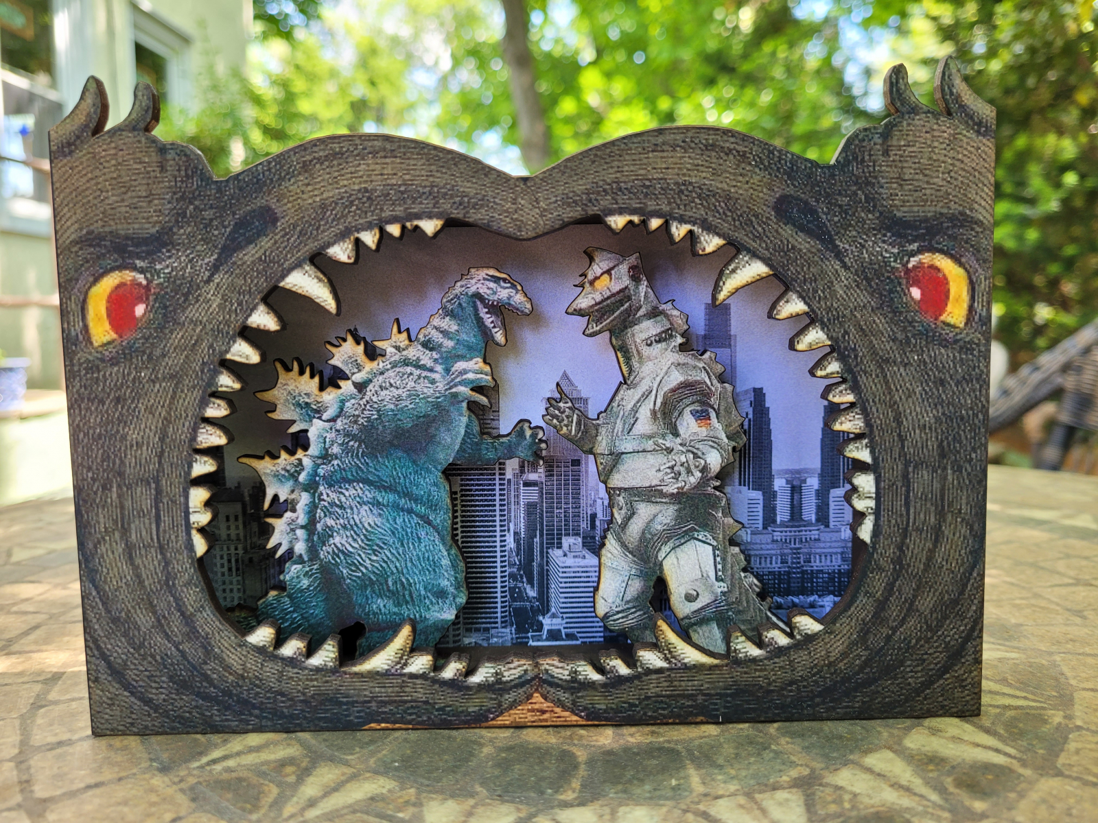 GODZILLA vs MECHAGODZILLA in Philadelphia shadowbox art