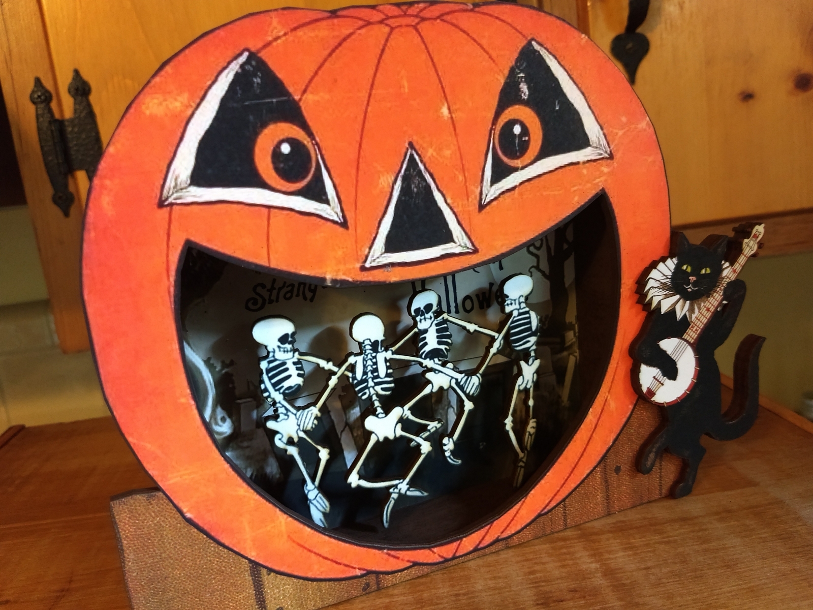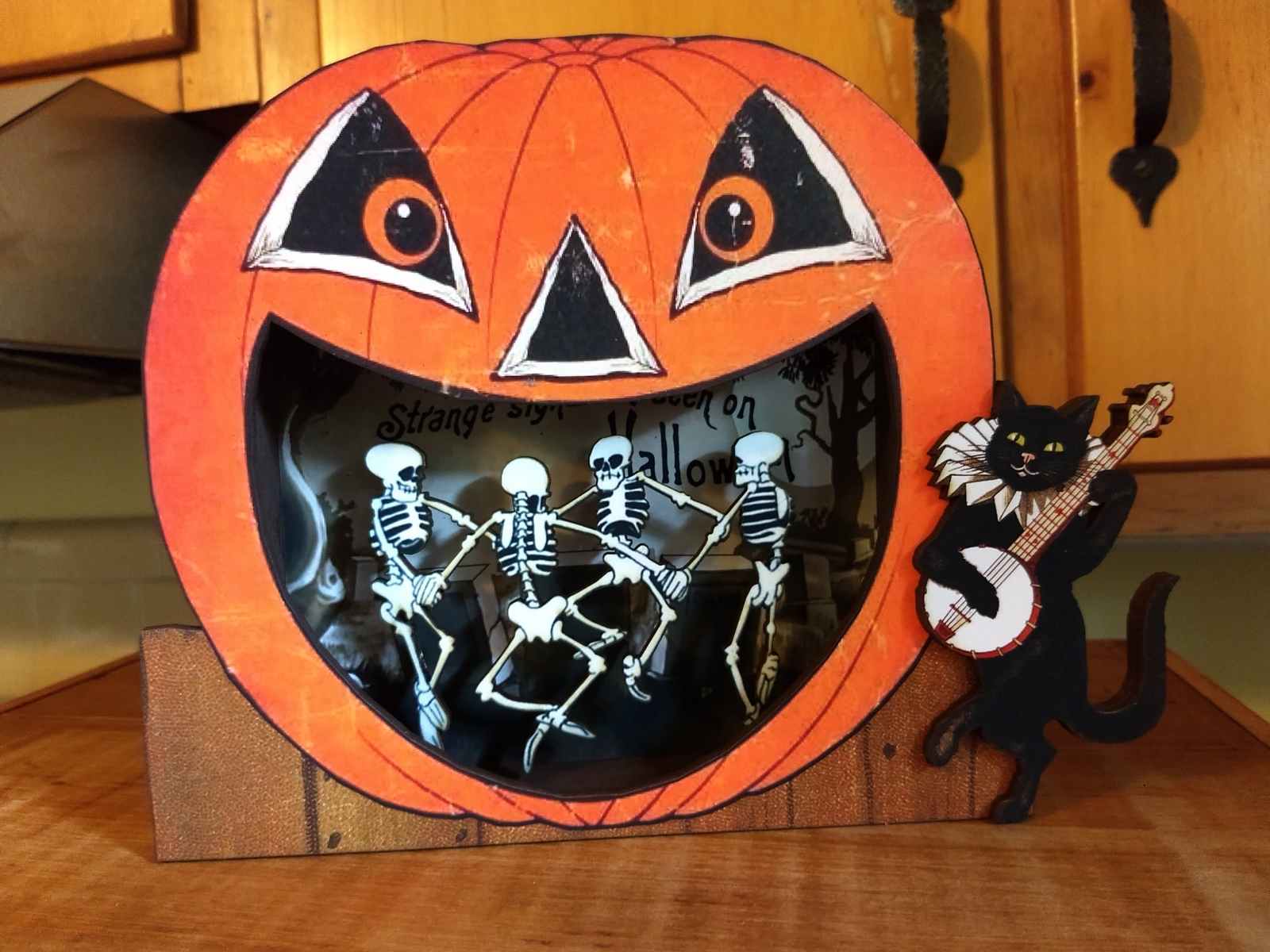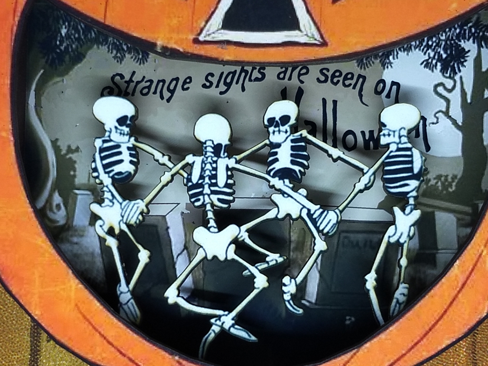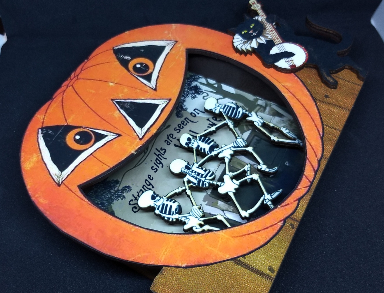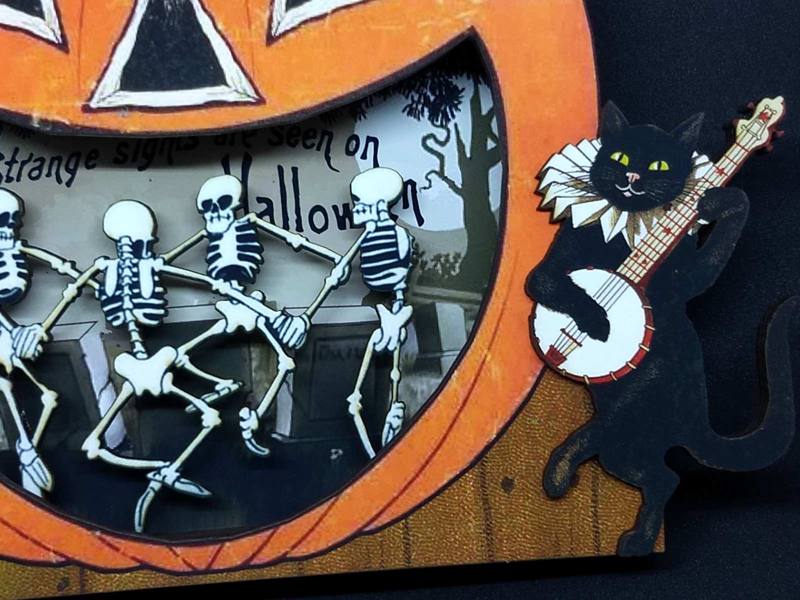 Halloween Jack-o-Lantern Skeleton Dance laser cut wood shadowbox art