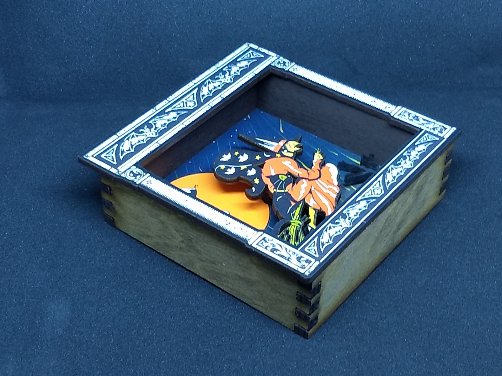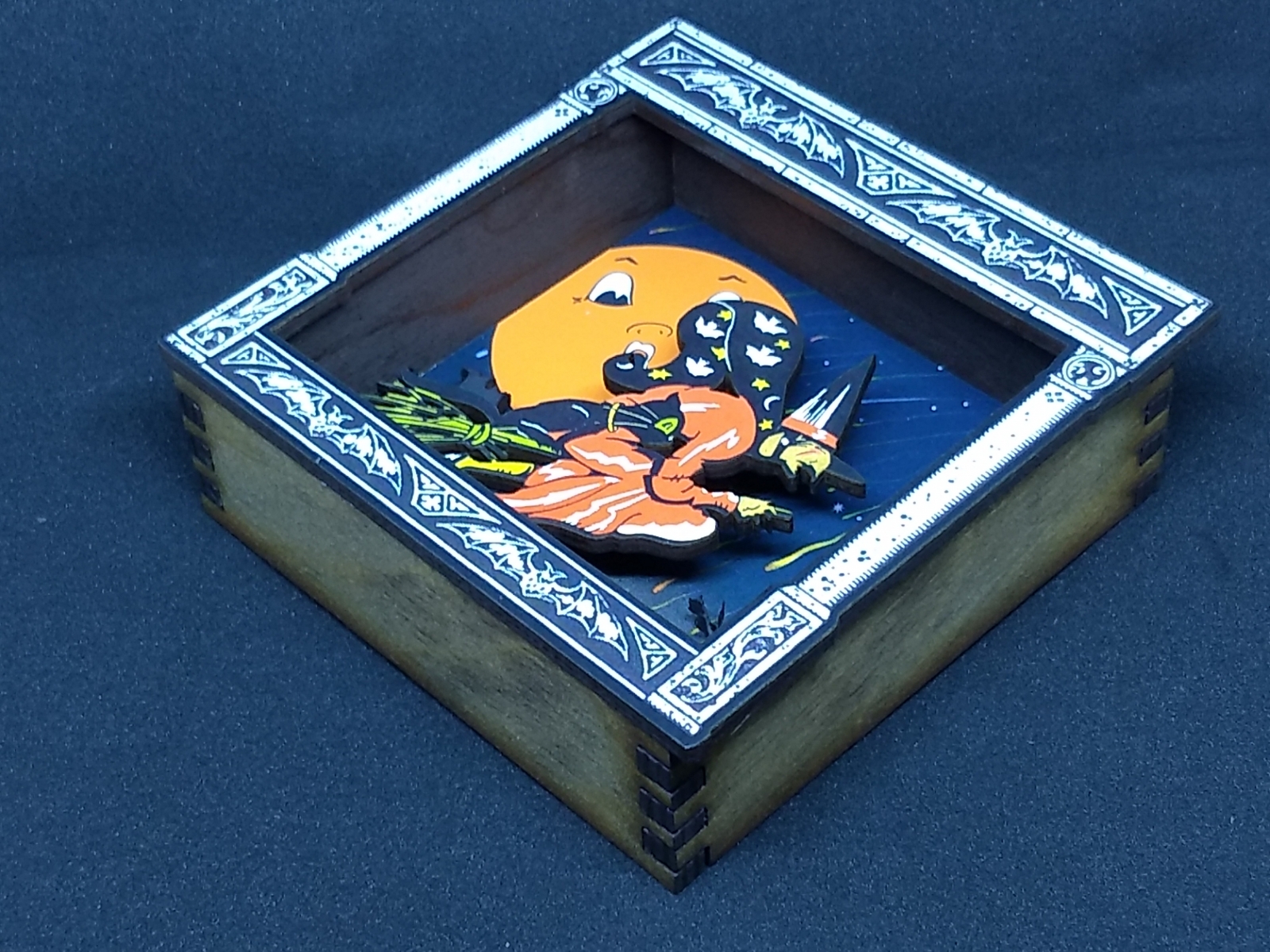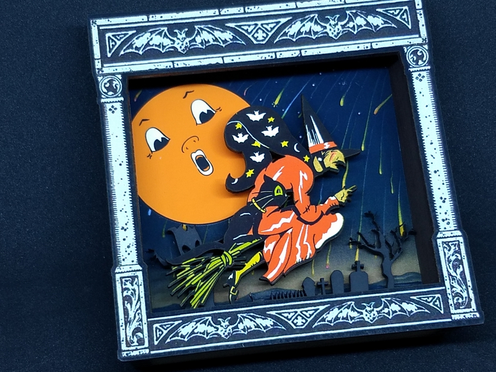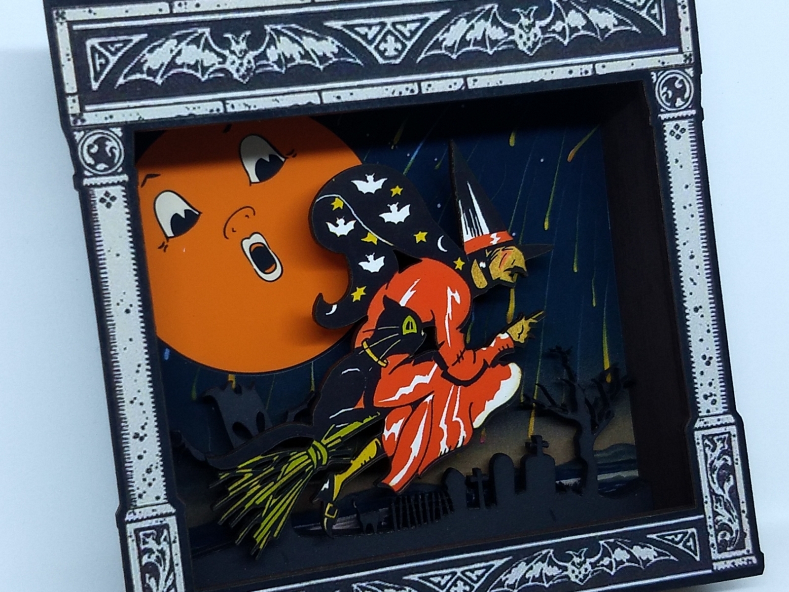 Halloween WITCH on a Broomstick laser cut wood shadowbox art
