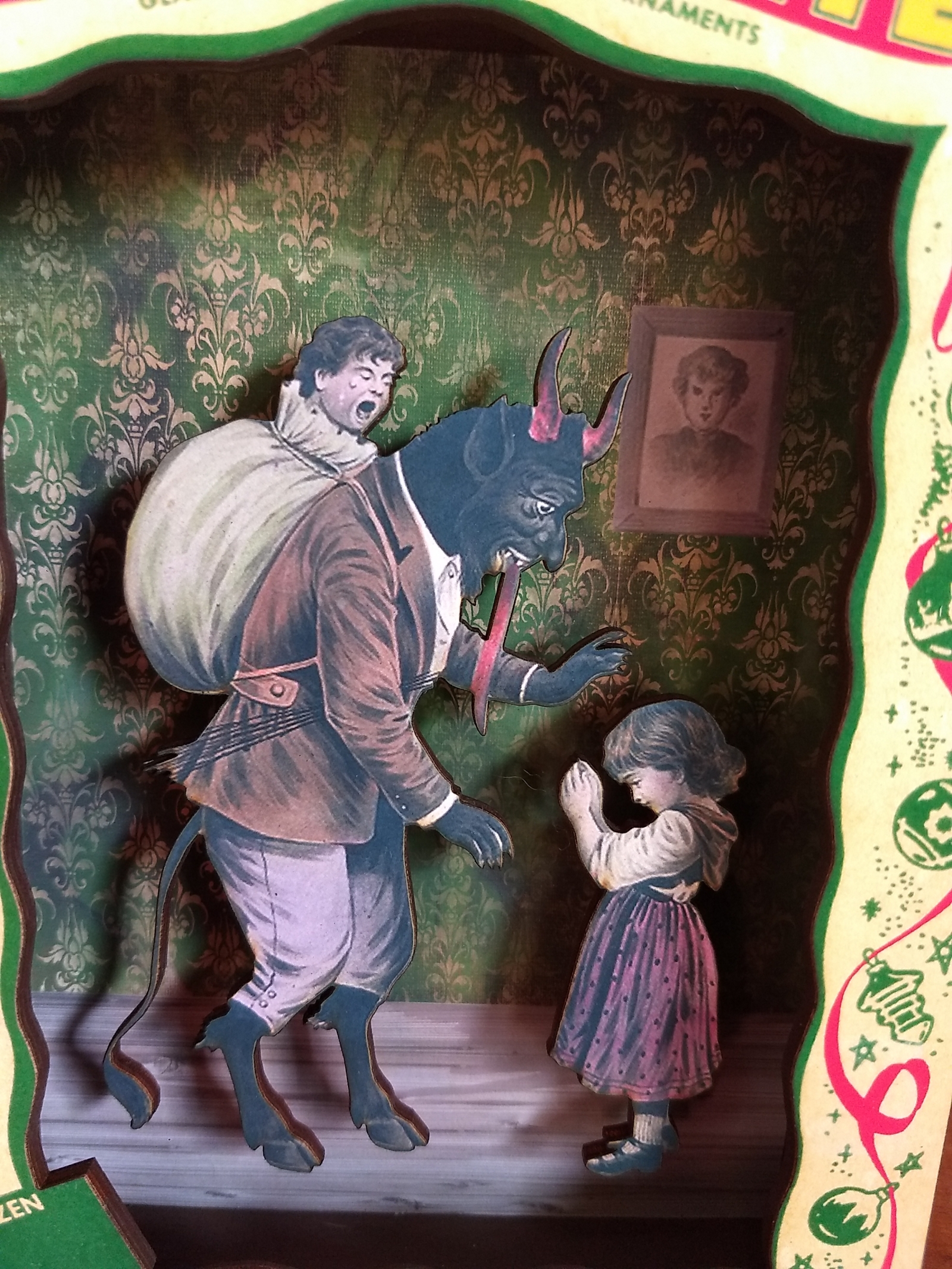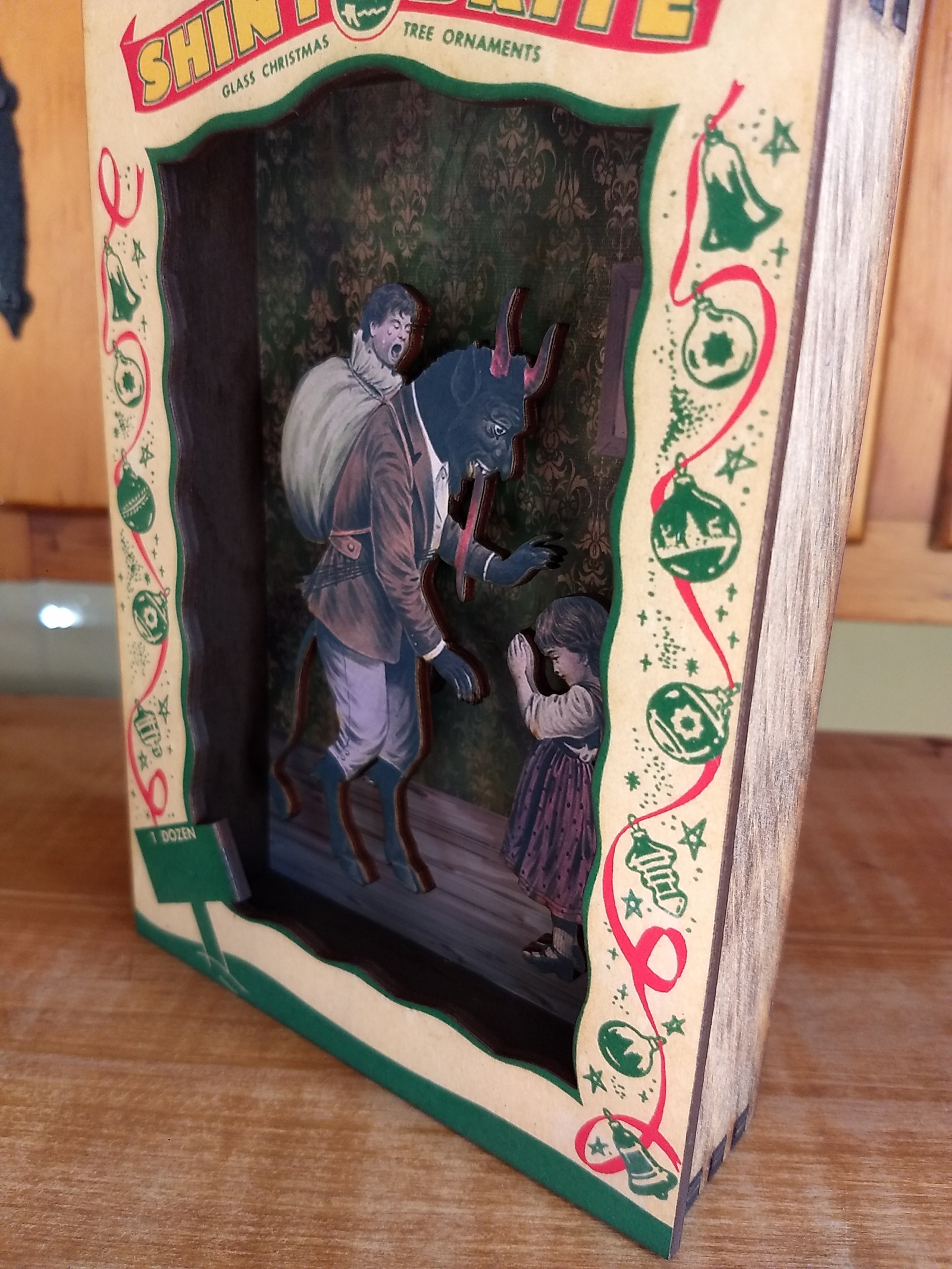 KRAMPUS Visiting the Children shadowbox diorama 3-D handmade wood artwork