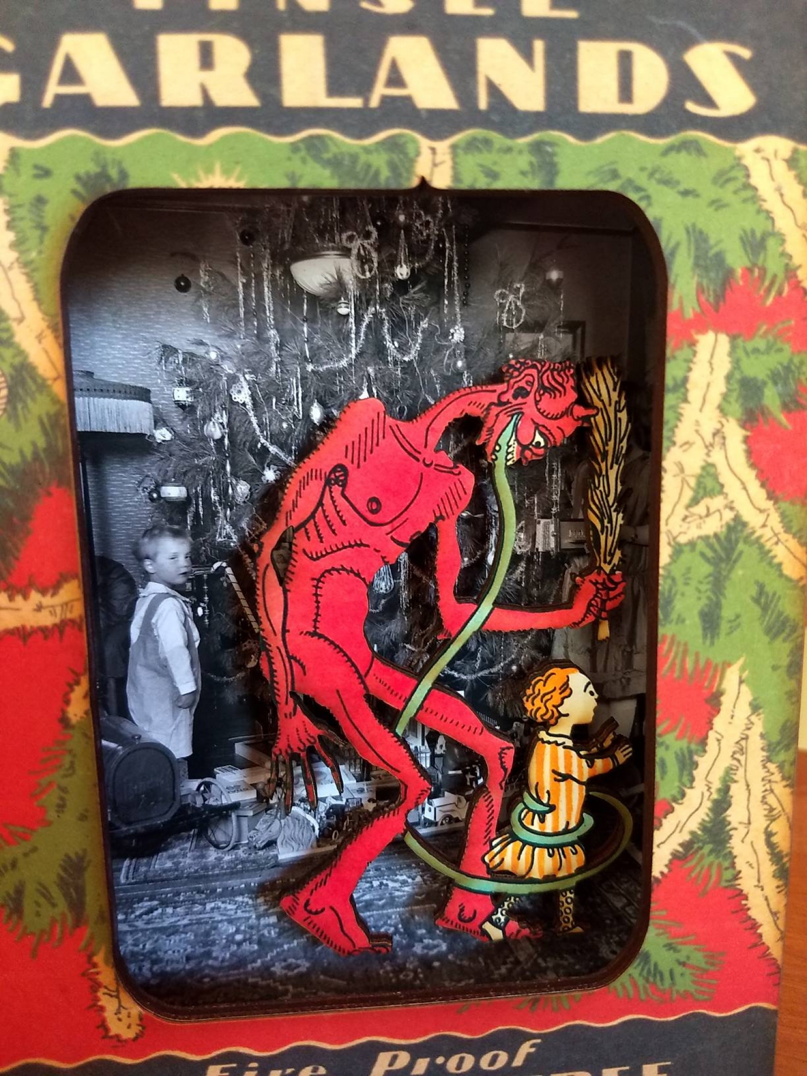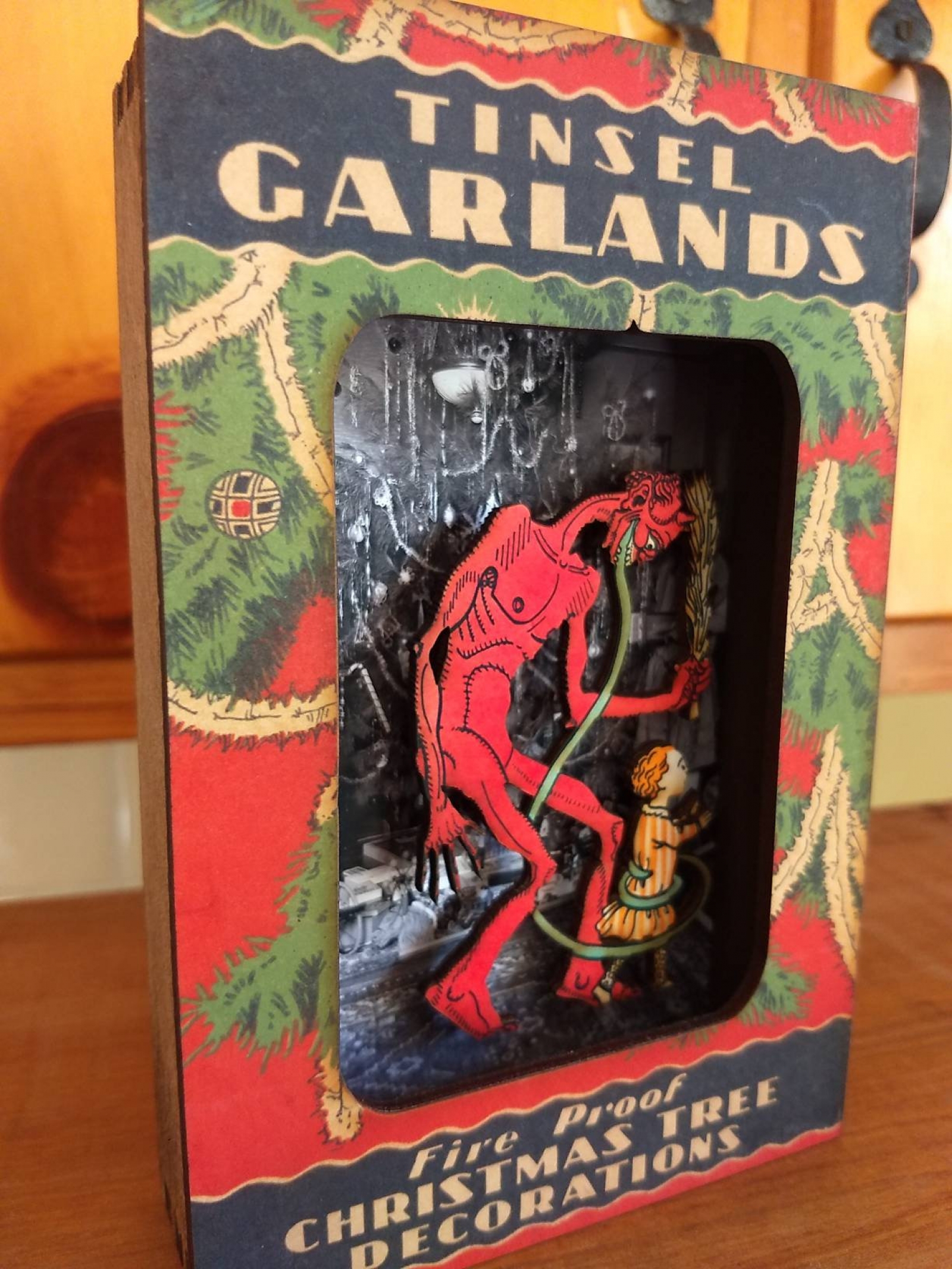 KRAMPUS in Your Living Room tinsel box diorama 3-D handmade wood shadowbox artwork