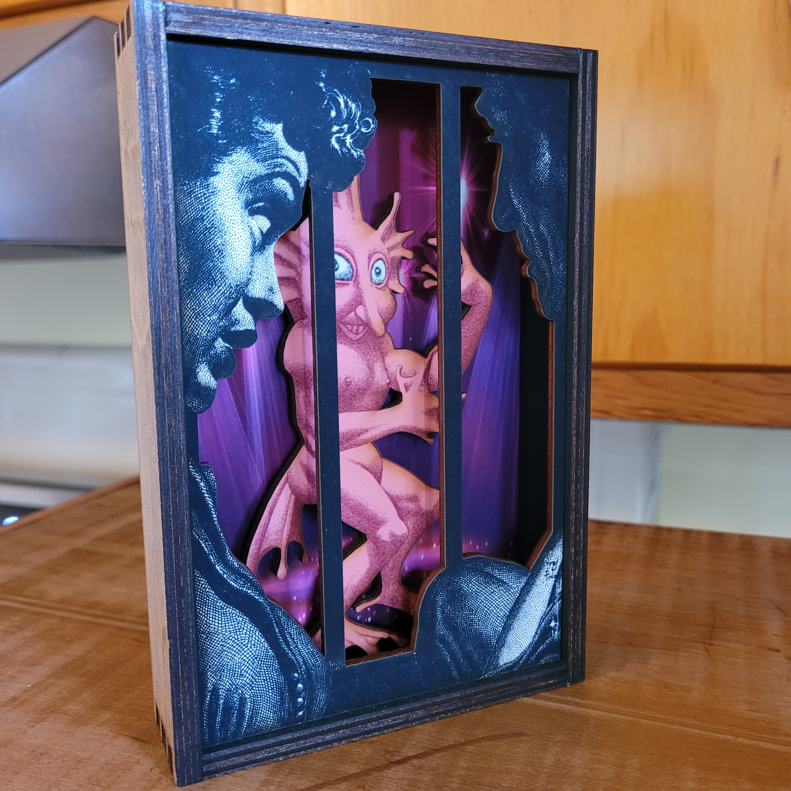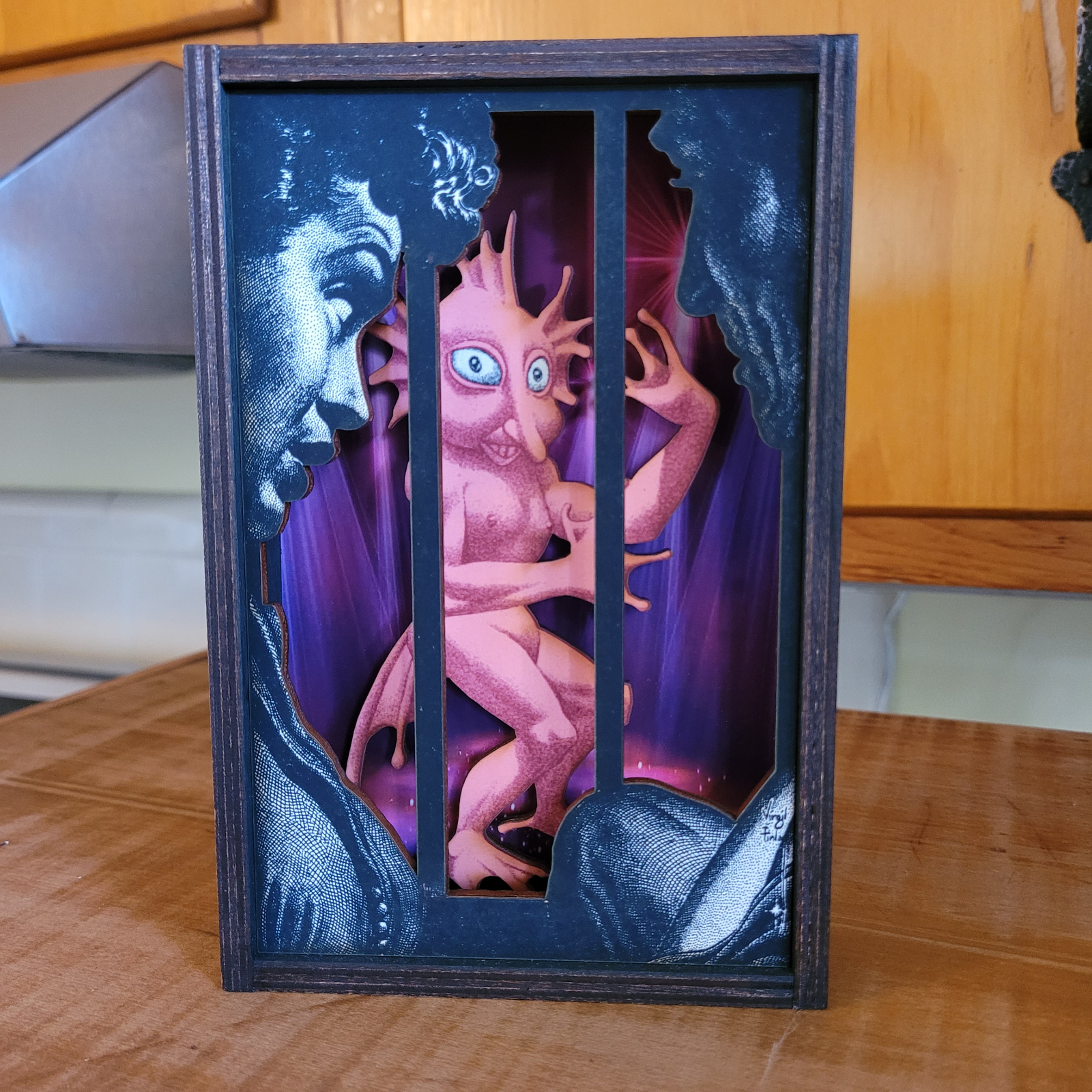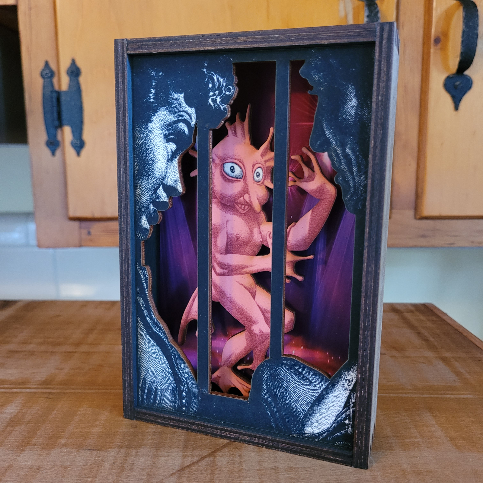 PINK Hannes Bok/Virgil Finlay GORGEOUS FREAK 3-D laser cut wood shadowbox art Disco Weirdo