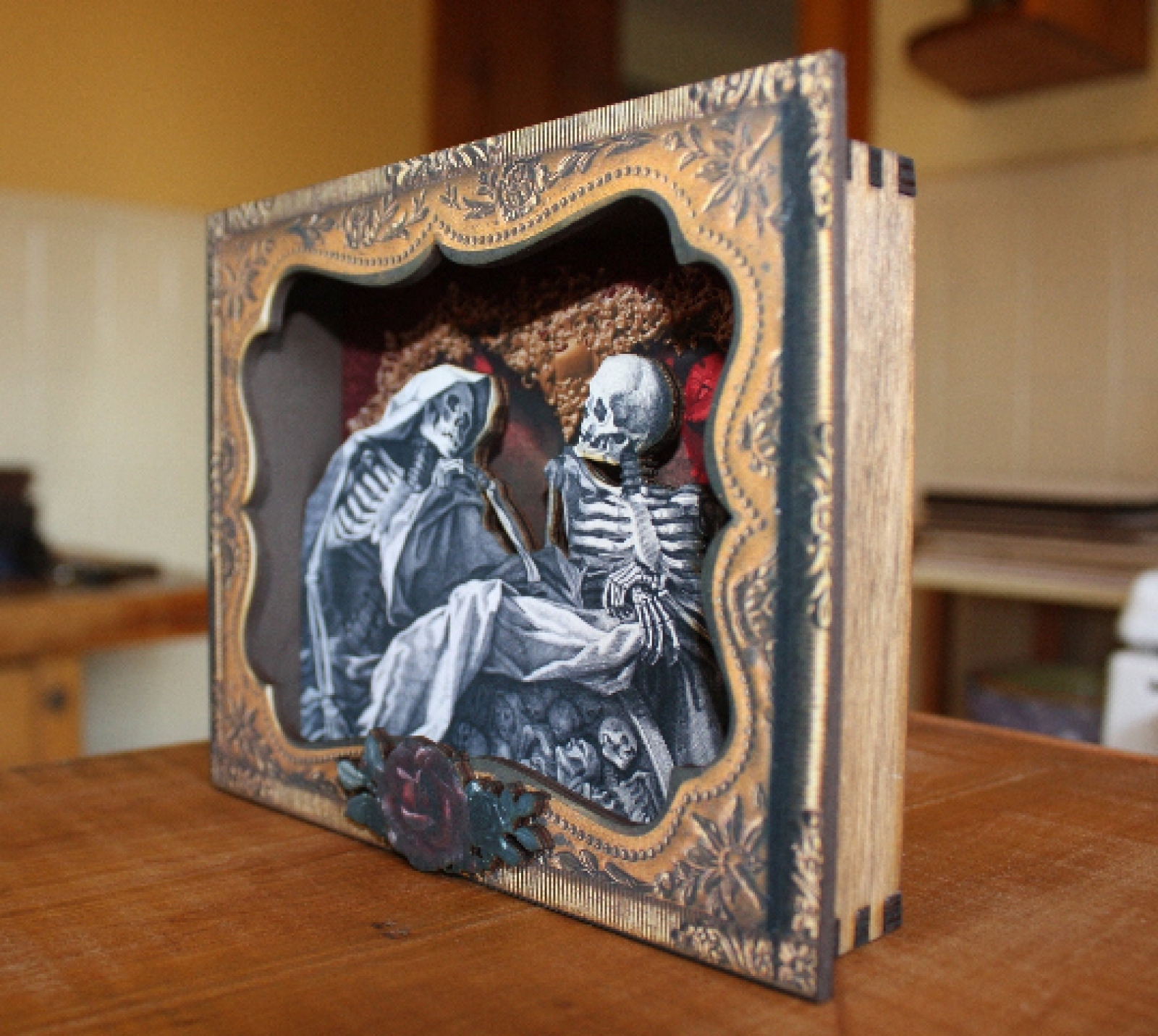 SKELETON COUPLE 3D laser cut wood shadowbox art