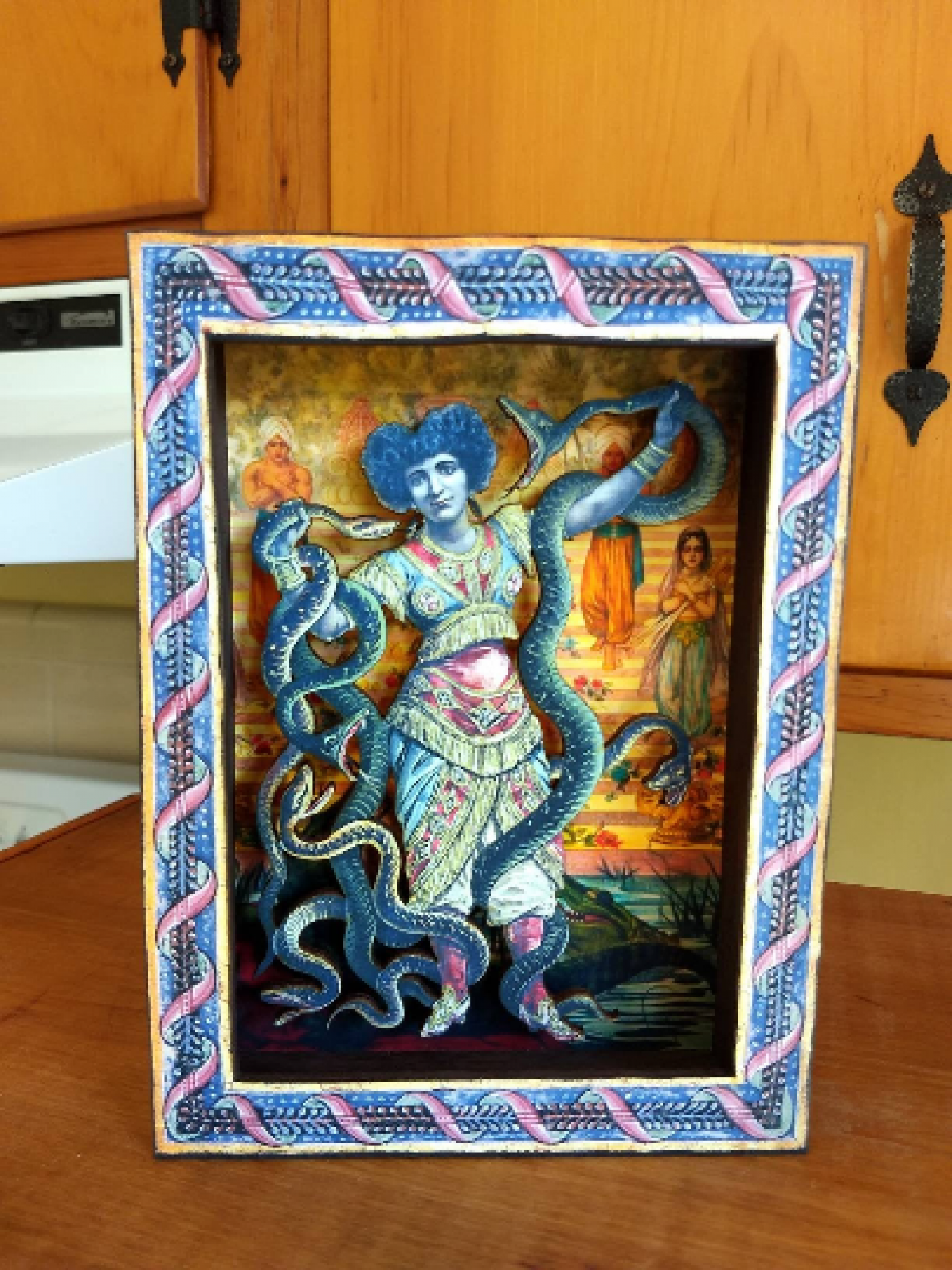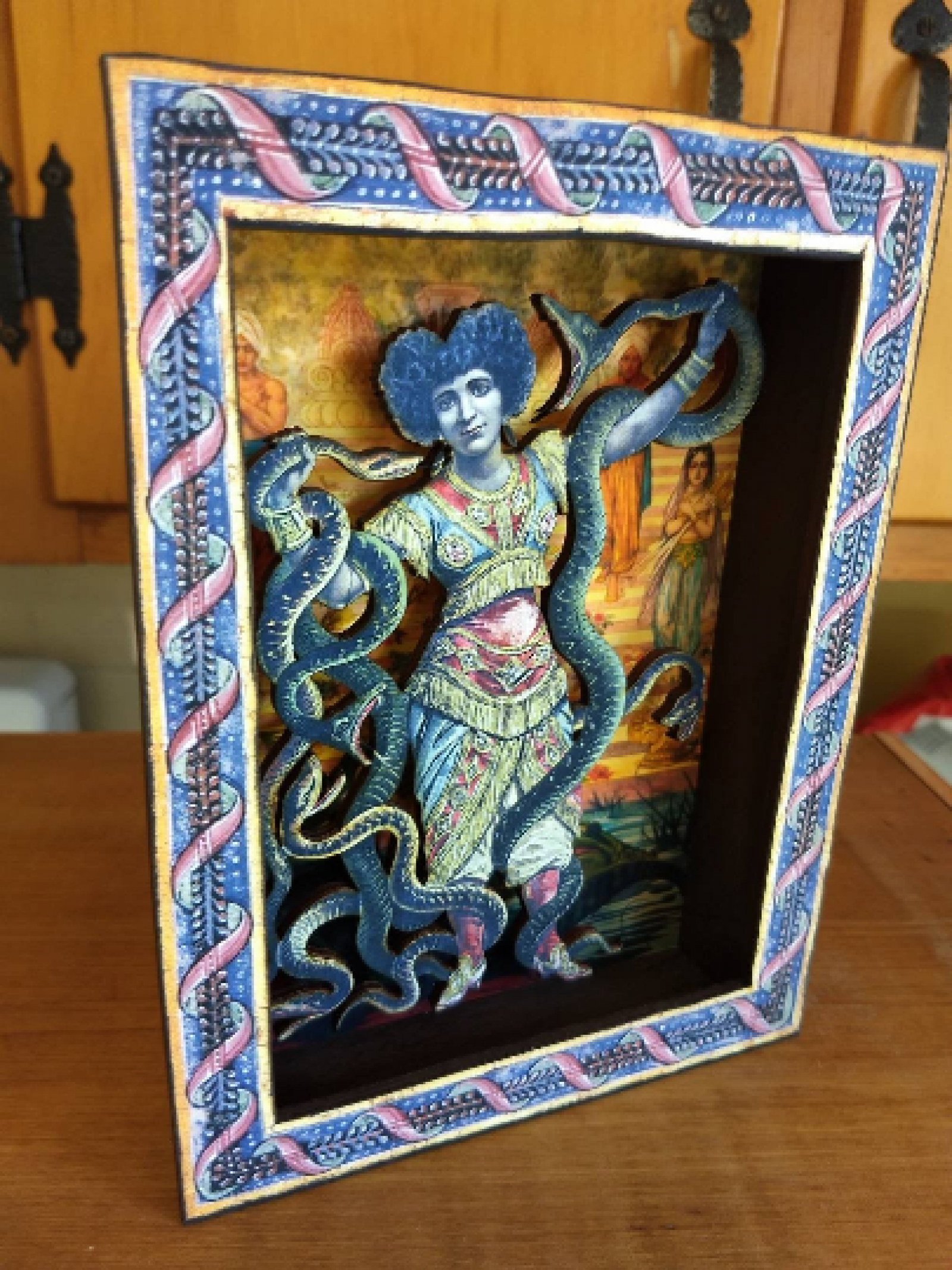 Vintage SNAKEHANDLER SIDESHOW laser cut wood shadowbox art