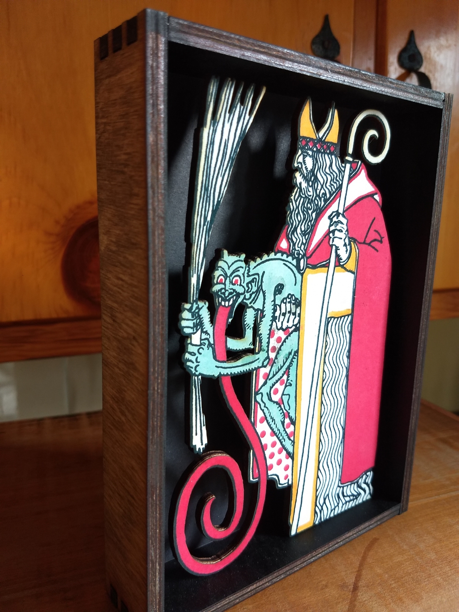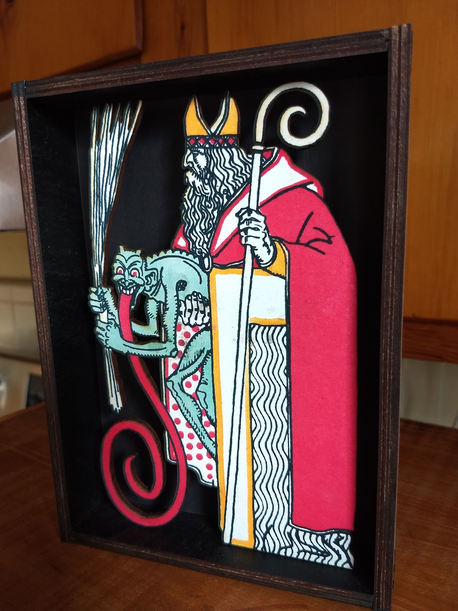 Vintage Viennese KRAMPUS art shadowbox 3-D handmade wood artwork